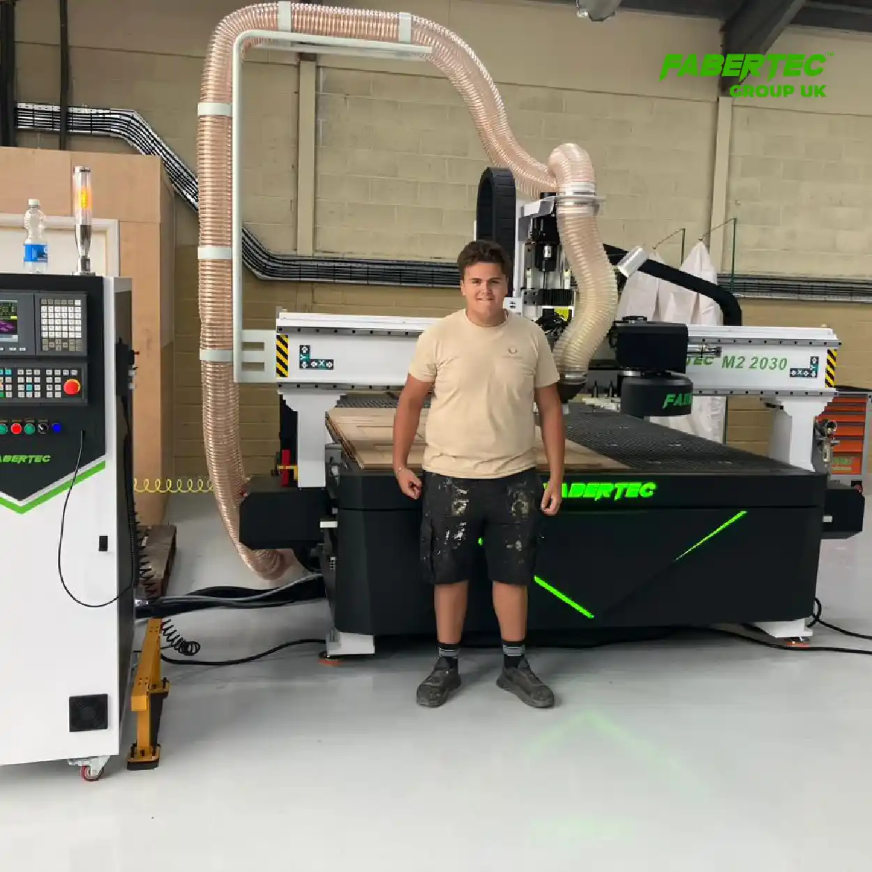 A Fabertec M2 2030 CNC Router has been installed at a workshop in Essex, where the team specialises in timber frame buildings, roof structures, bespoke joinery, and loft conversions. With years of experience in structural and custom carpentry, their projects demand precision cutting and efficient handling of large timber panels — and the M2 2030 fits right in.